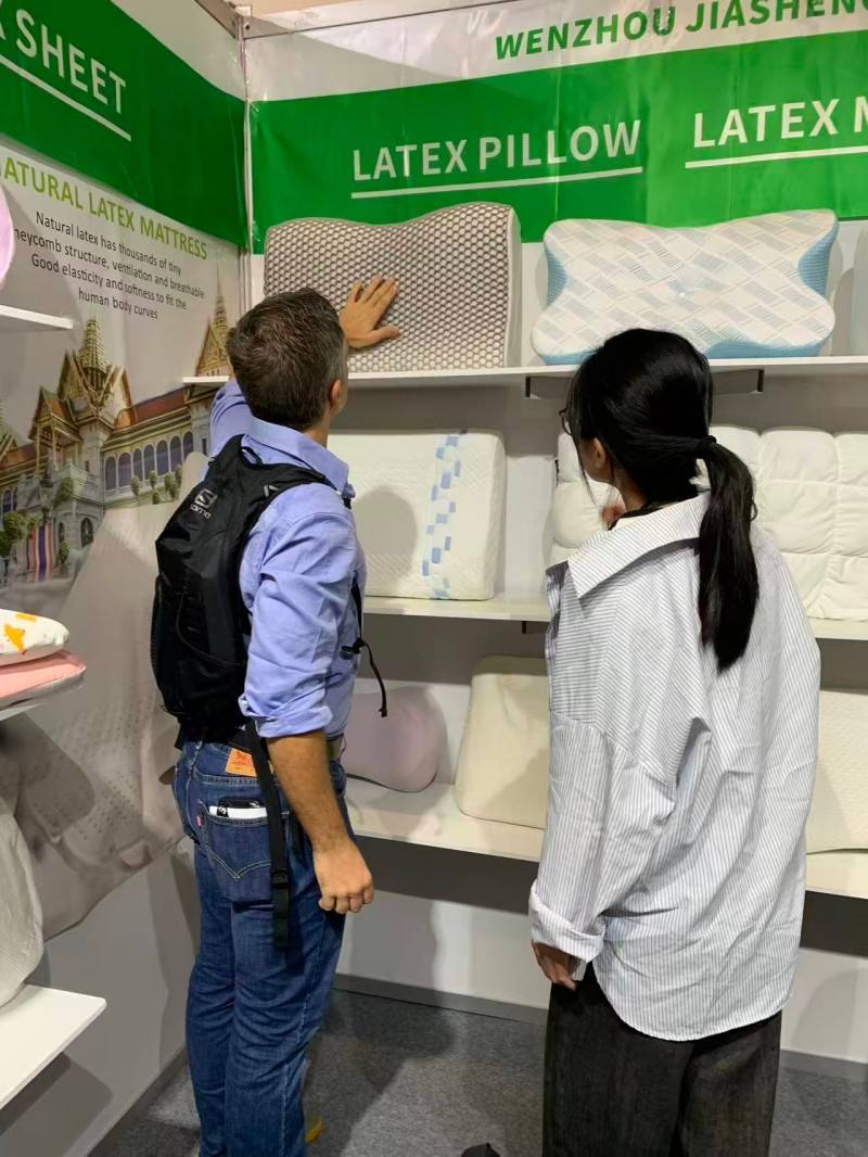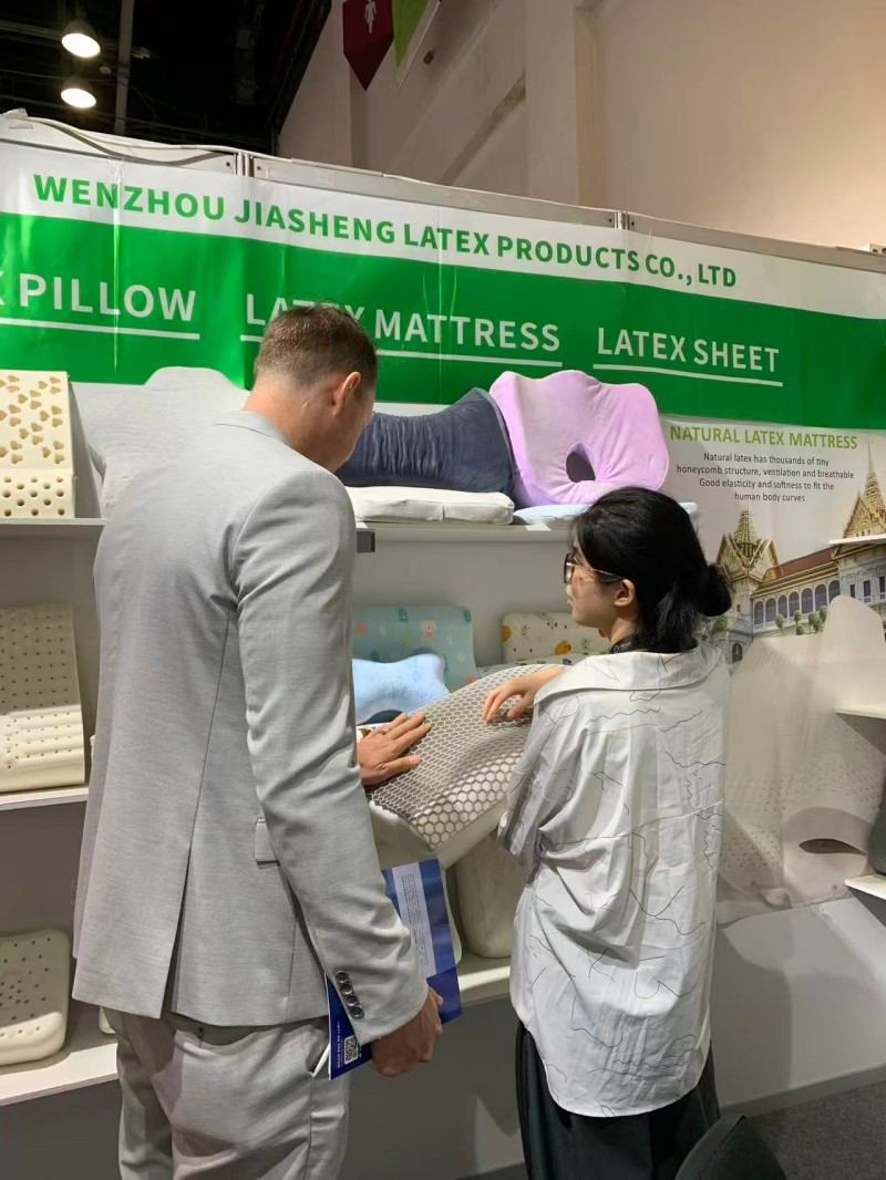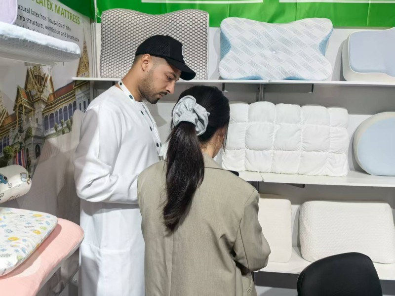 In questa mostra di u sonnu di Dubai, simu onorati di mostrà i nostri cuscini focalizzati in u sonnu à i visitatori di u mondu. Semu dedicati à presentà dui di i cuscini più venduti in u mercatu: ucuscinu di lattice naturaleè u materiale intelligente mudernucuscinu in schiuma di memoria. U rimballu rapidu è e proprietà anti-allergii di u lattice sò assai favuriti da i dilettanti di lattice. Intantu, l'ultima misura di spuma di memoria pò furnisce un sonnu prufondu. A nostra cumunicazione approfondita cù i clienti in u situ ci hà fattu sentu a so ricerca di cuscini. Cridemu fermamente chì furnisce scelte persunalizate per diverse abitudini di u sonnu hè a chjave per un sonnu di qualità.